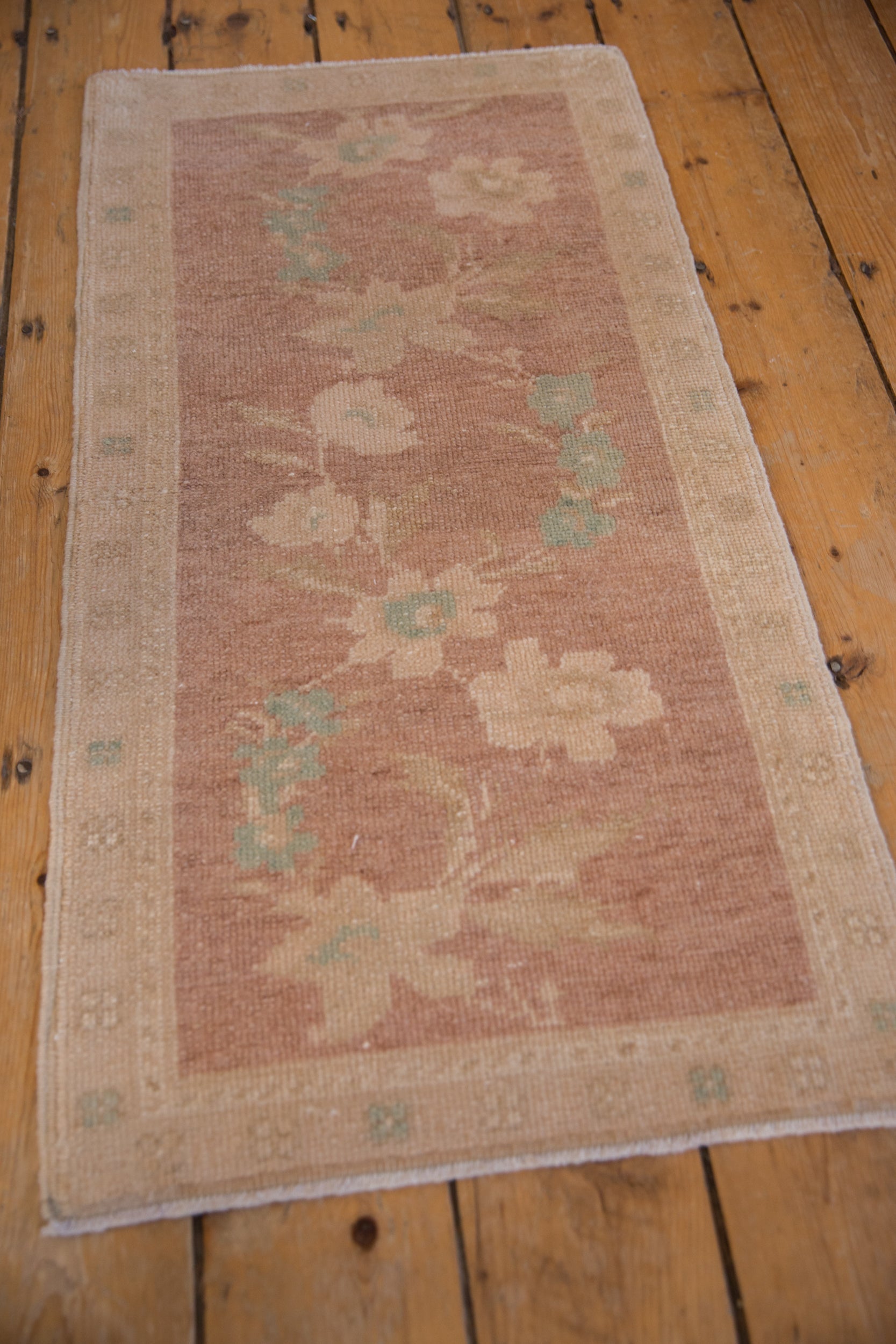 :: Meandering floral spray interconnected by delicate vinery and expressive floral top views and blossoms in large scale nuanced format. Colors and shades include: Dusty mauve with a hint of copper, sand, beige, seafoam green, antique ivory and more. Condition notes: Even wear across to knot heads. Original side cord selvages intact. Fully secured sides and ends. For processing purposes, this and other rugs of the type may have painted numbers on the reverse side. Recently professionally cleaned ready for in-home use! Many years of enjoyment to come with this hand knotted Turkish Oushak rug mat runner made in Turkey circa 1980's vintage. Size measures 1'8" x 3'5".