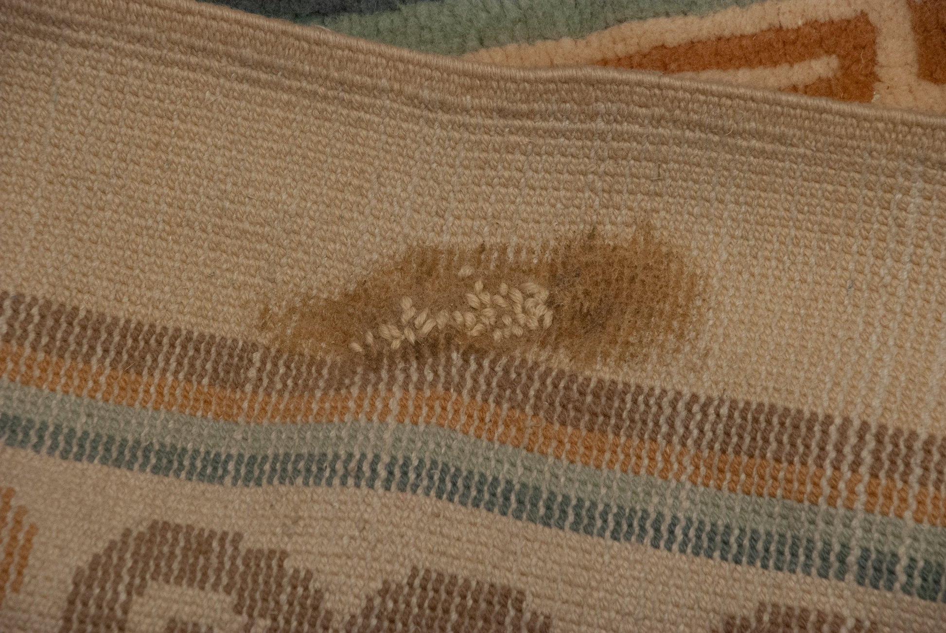 :: Center roundel medallion atop a covered field of minor medallions, potted plants, buds and blossoms. Reciprocating inner running T minor border wrapped by a wide vine meandering main border. Colors and shades include: Antique ivory, terra cotta, copper, pale coffee brown, powder blue, mint green, cream, beige and more. Condition notes: Like-new, original full pile height even across. Original side cord selvages intact. Fully secured sides and ends. Several small areas of repairs and mends in varying degrees of expertise. Recently professionally cleaned ready for in-home use! Many years of enjoyment to come with this hand knotted Japanese Peking design carpet made in Japan circa 1950's vintage. Size measures 10'7" x 17'7".