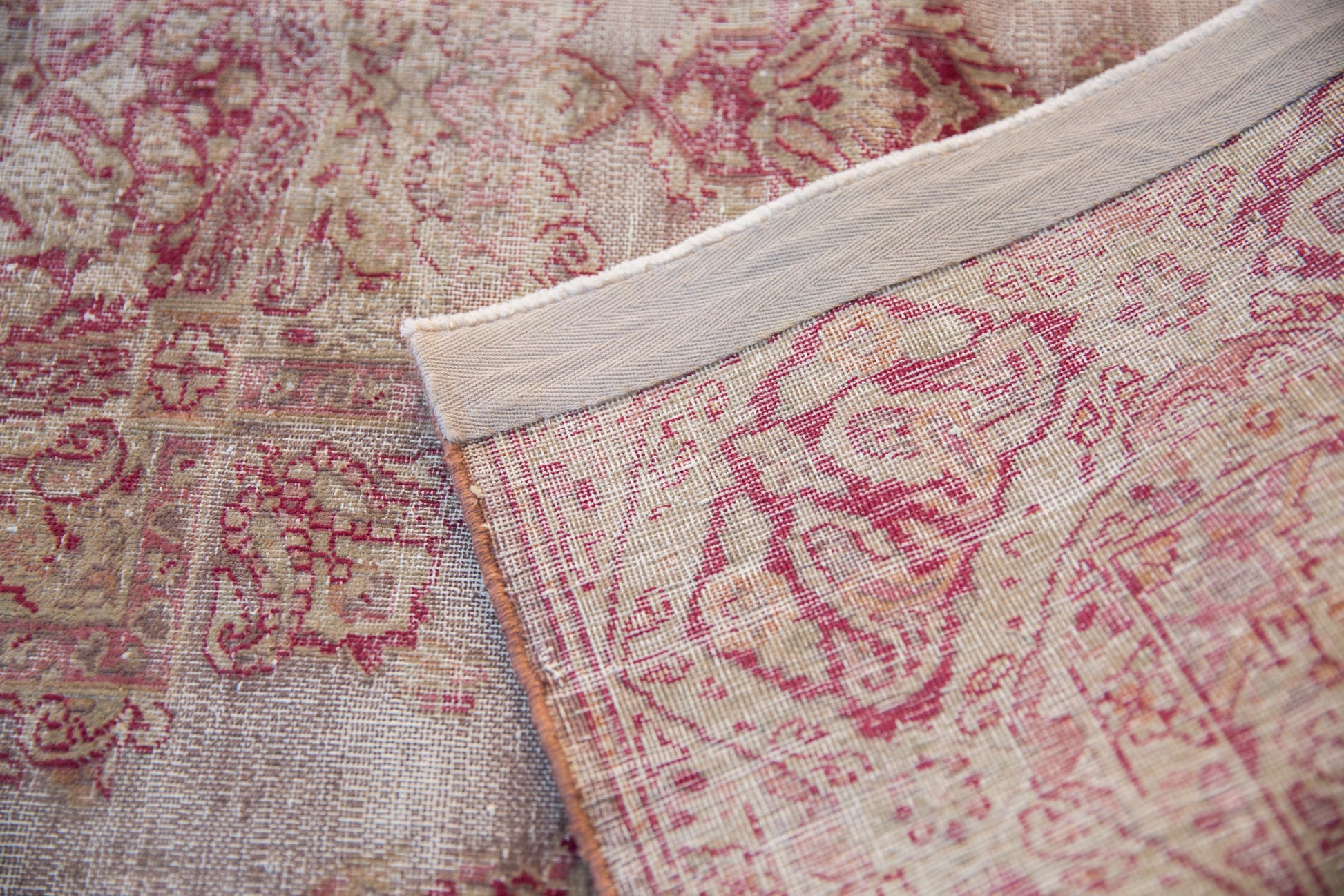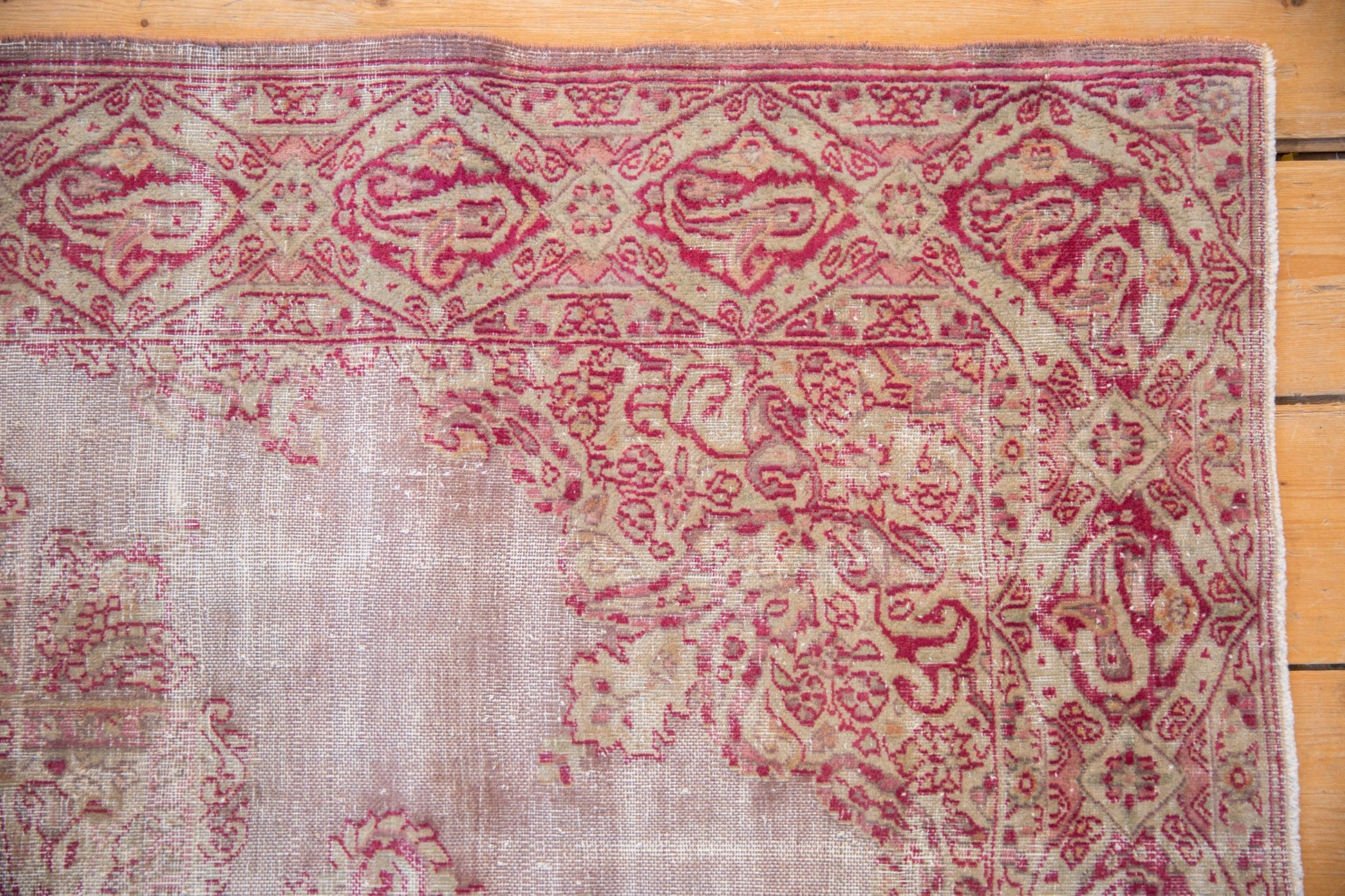 :: Formal elegance and casual distressed aesthetic. Large, dominating center medallion defined by floral characteristics atop an open central field flanked with receptor style spandrels. Colors include grey, dark cranberry red and shades of white which come from the surfaced foundation. Recently professionally cleaned ready for in-home use! Many years of enjoyment to come with this distressed hand knotted Turkish Sivas rug circa 1950's vintage. Exact size measures 3'1" x 5'.