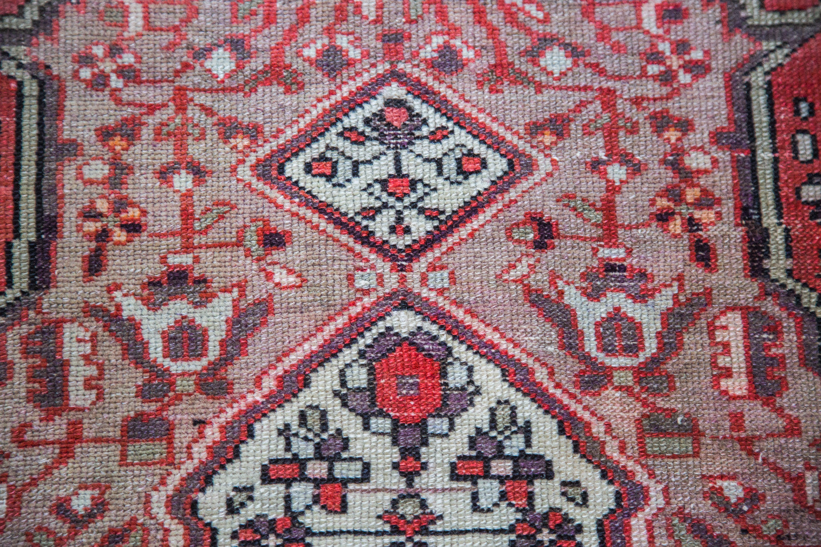 :: Vintage Persian Malayer carpet circa 1915. Large oversize ivory medallion in scrolling vines atop a abrashed field of charcoal, bronze, mauve and silver. Gorgeous aesthetic and super versatile neutral tones conducive to most any room in the home or office. Many years of enjoyment to come with this rug! Recently professionally cleaned, ready for in-home use. Exact size measures 4'5" x 6'7".