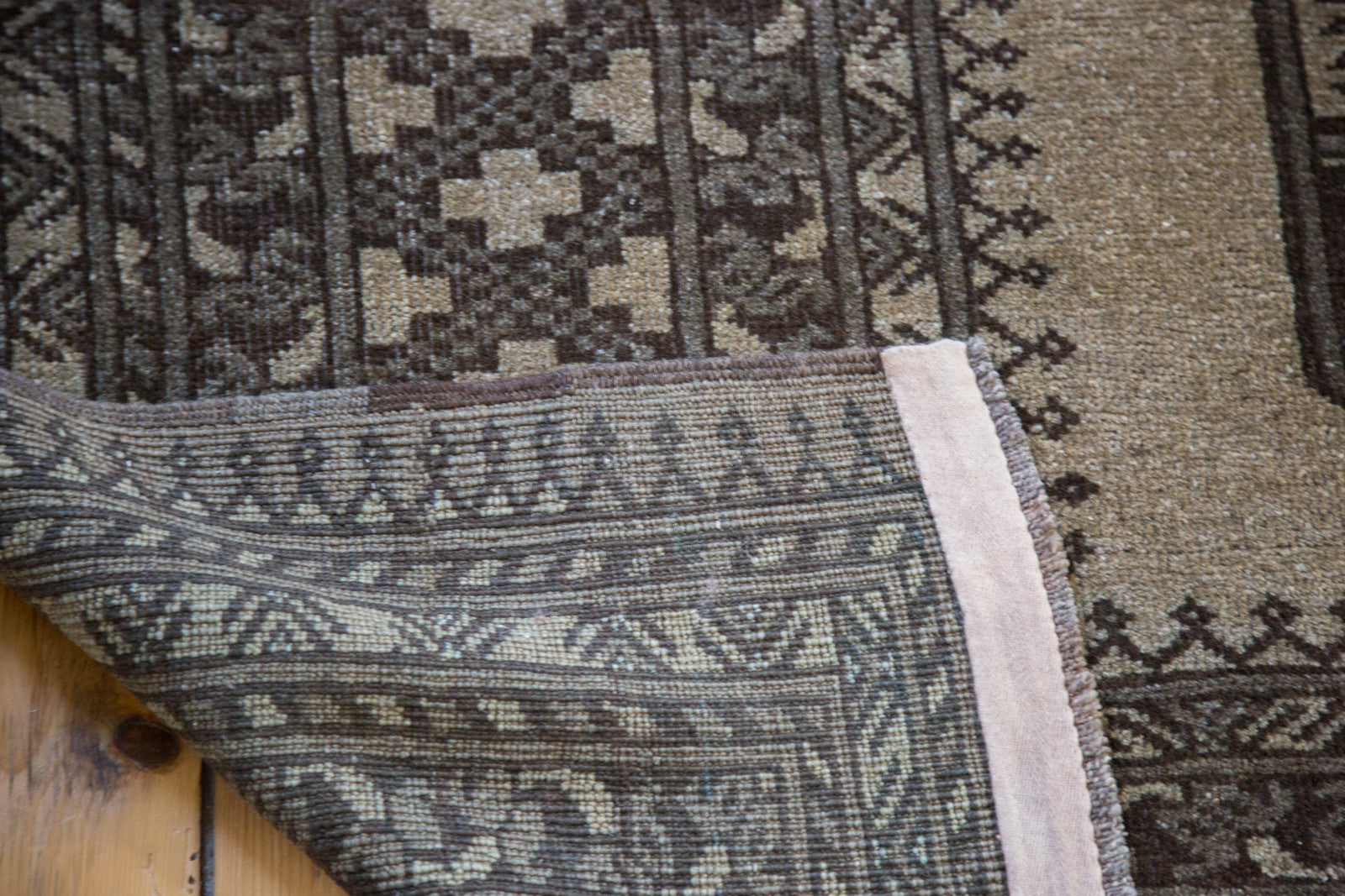 :: Hand-knotted carpet made in Afghanistan, likely Ersari. Repeating oversize guls with geometric foliage and woven interpretation of plants and meandering leaves. Light camel, almost a hint of bronze field with tri-color of charcoal, grey and ivory. Hand-knotted carpet of unique character and aesthetic. Will be a joy to decorate with and many years of hard wearing service to come! Recently professionally cleaned, ready for in-home use. This vintage 1970's vintage Afghani hand knotted carpet measures 7'3" x 10'3".