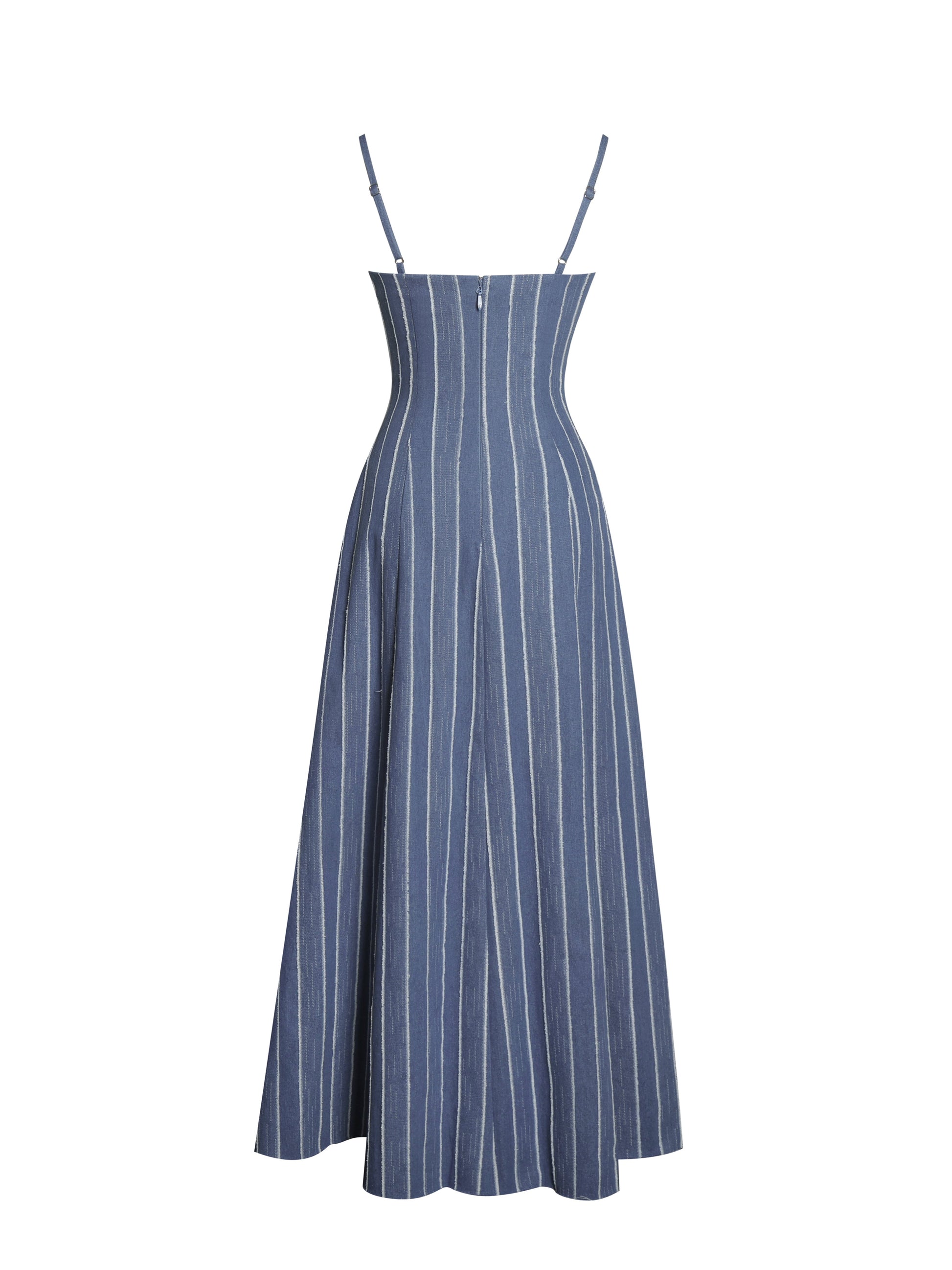 The Abygail Dress is a fresh take on casual elegance with a touch of edge. Crafted from soft stripe cotton and denim, this maxi dress features an effortless A-line silhouette that flatters every figure. The adjustable straps ensure a personalized fit, while the middle slit adds a subtle hint of allure and movement. Finished with organic edges for a relaxed charm, this dress is fully lined for comfort and features invisible pockets and an invisible zipper for a clean, seamless look. A perfect piece for sunny strolls, weekend getaways, or laid-back brunches.