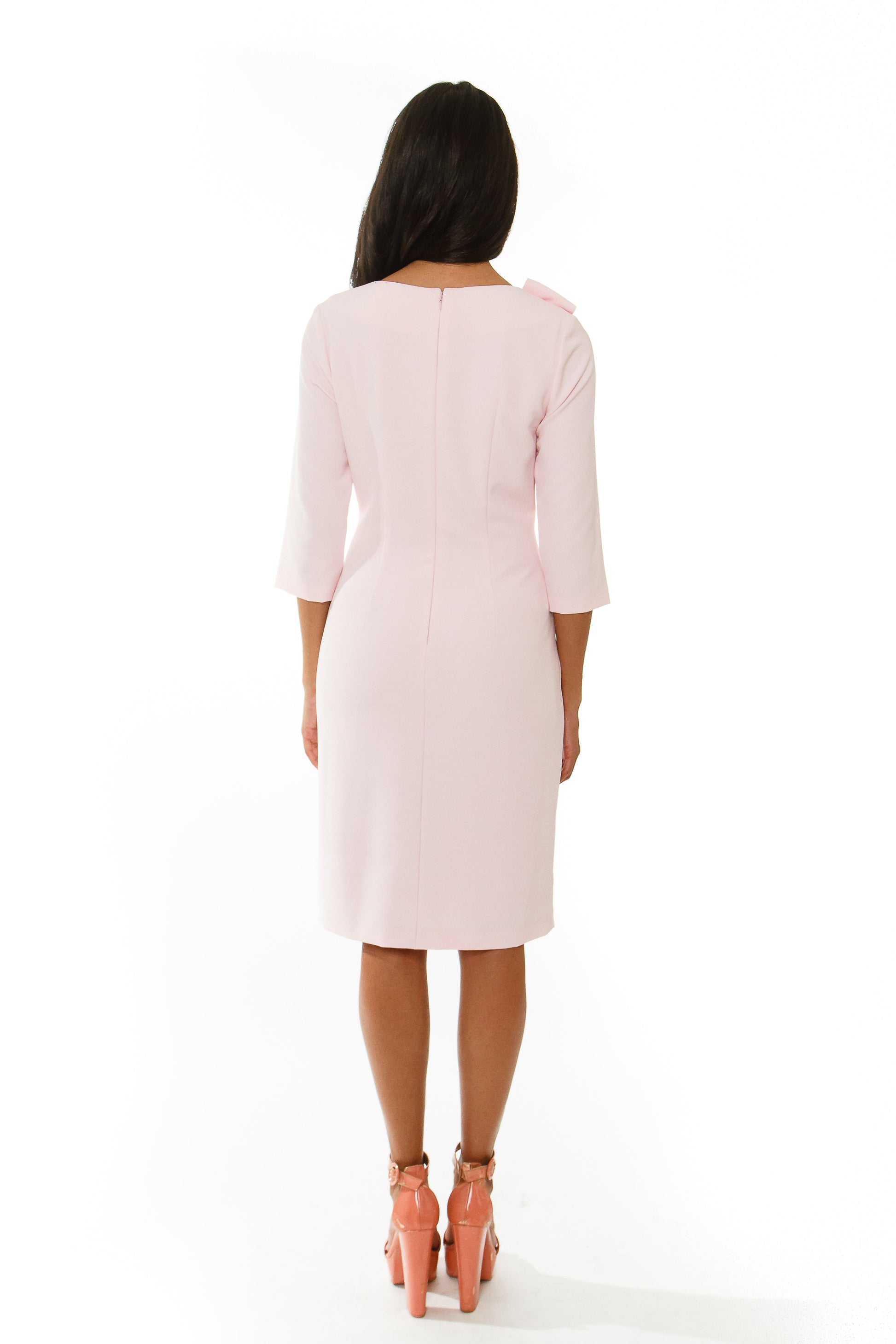 Embrace your bold and adventurous side with our Asymmetric Bow 3/4 Sleeve Signature Sheath. This classic yet modern dress features a v-neck and our signature asymmetric bow, highlighting your feminine and powerful style. A timeless piece for every woman's wardrobe.
