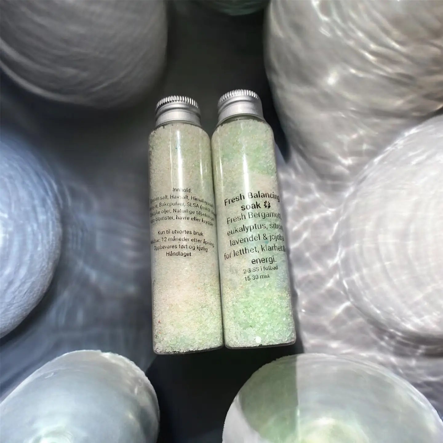 A soothing and restorative foot soak created for evning rituals and deep relaxation. This calming blend of mineral salts and gentle essential oils helps relieve tired, sore feet while support rest, recovery, and a peaceful transition into the night. Made with mineral-rich Epsom salt and Sea salt, this soothing blend offers a calm, spa-like experience at home. Ideal after long days on your feet, workouts, or whenever you need a gentle reset. Key Features • Mineral-rich Epsom, Sea salt & Himalayan salt • Light natural foam • Ideal for self-care & gifting • Handmade in small batches How to Use Add 2–3 tablespoons to warm water. Soak for 15–30 minutes. Ingredients Epsom salt, sea salt, baking soda, jojoba oil, citrid acid, SLSA (mild foaming agent), essential oils with Lavendel, eukalyptus, peppermint tea tree sent profil: Clean, calm, night-time relaxing Details • Size: 50 g • • Store cool & dry • Handmade