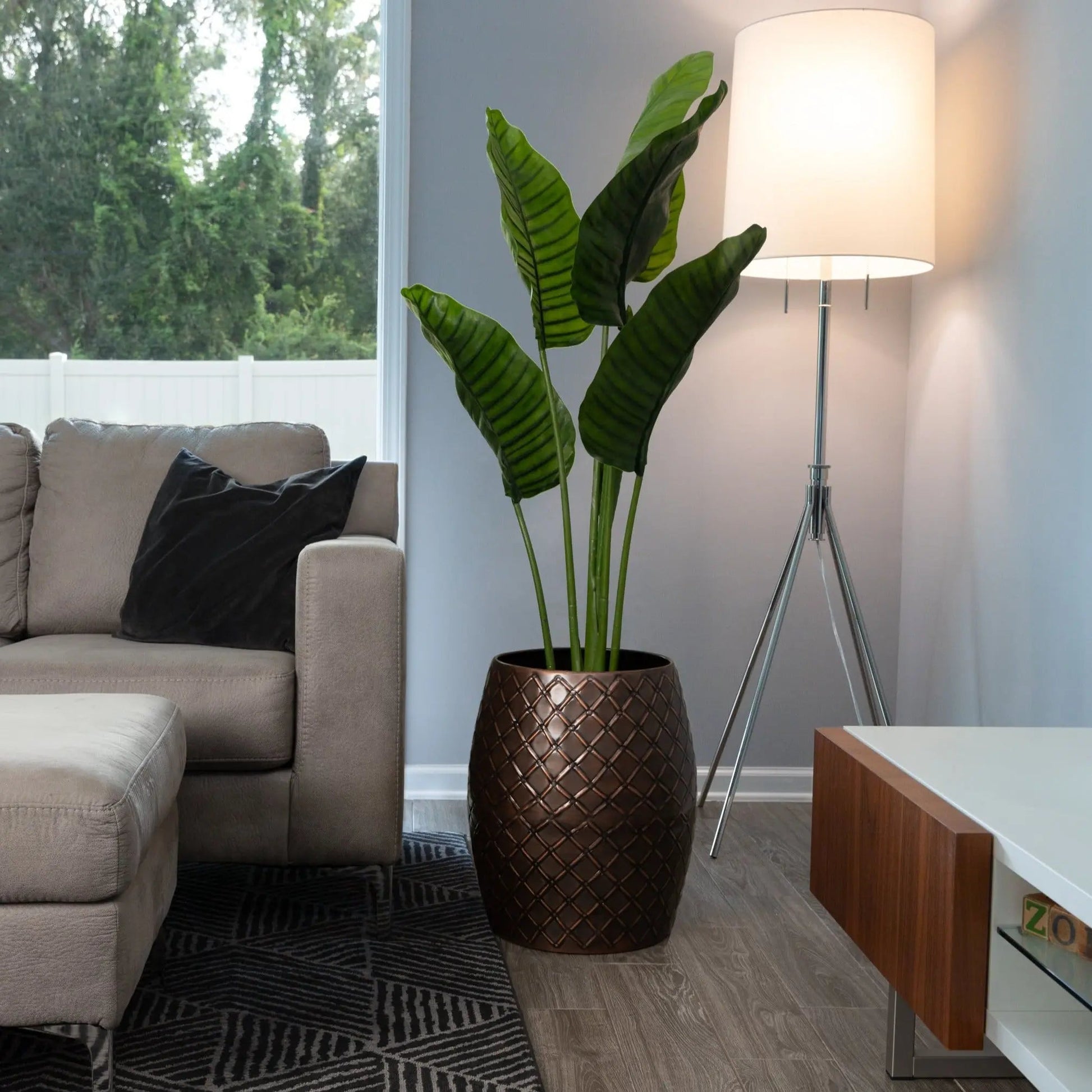 The Braga Metal Stool is a truly crossfunctional piece, serving as a stool, an occasional table, a planter, or a multipurpose container. With sturdy steel construction in a glossy Copper finish, you'll find a multitude of uses for this handsome piece. Place indoors or out with the solid end up to create flexible seating or a useful table surface, and to use as a container, simply flip the open end up. Place a plain pot in the roomy interior to use as a decorative planter, accenting cascading florals or ornamental trees.