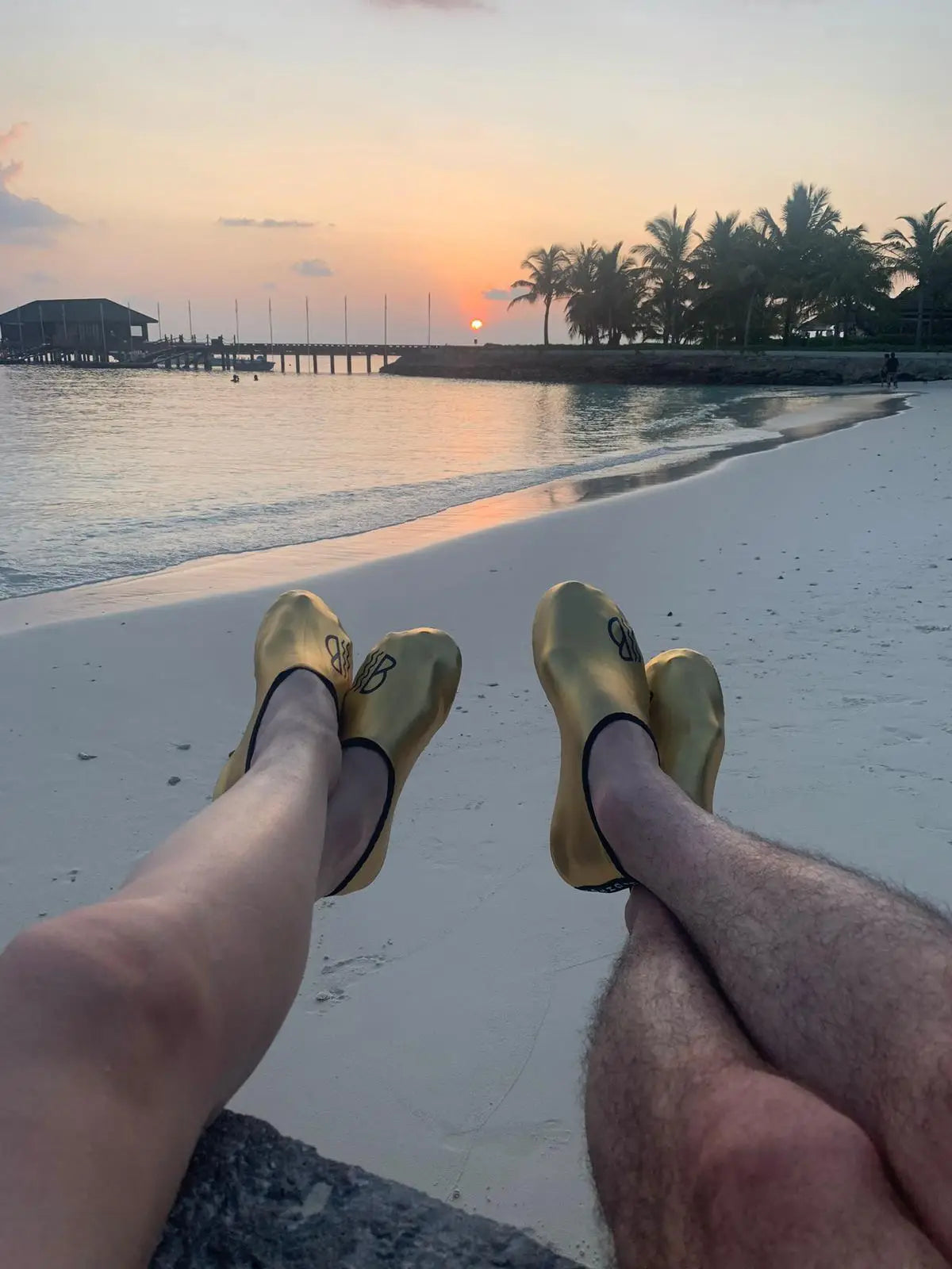 Anti-slip rubber soles, perfect for all types of water sports. Watch our video of the water shoes where you can see the water shoes in more detail. Gold Water Shoes For Swimming, Watersports & on Land. Gold colour inspired by the carousel on Brighton Beach! Breathable Mesh Storage Bag Included.