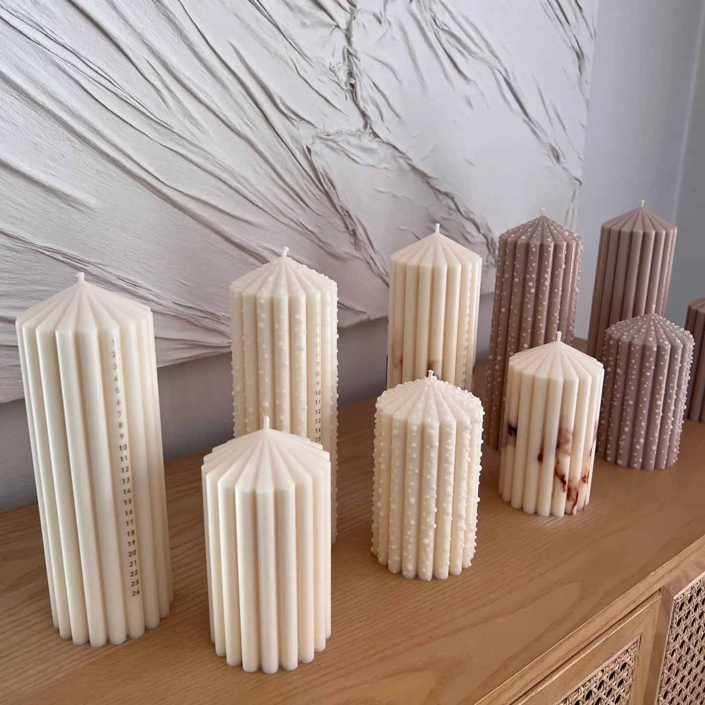 Calendar candle - Danish tradition Scandinavian aesthetics Handmade Number strip from 1 to 24 94% soy wax & 6% paraffin Burn time approx. 90 hours Unscented Cotton wicks Dimensions 20x7 cm