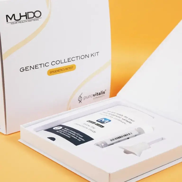 The Muhdo Epigenetics Retest Kit is your opportunity to track and monitor the progress of your health journey. Building on the initial assessment, this follow-up test combines DNA analysis with epigenetic testing to provide an updated and detailed view of your body’s biological age. By re-evaluating specific biomarkers, the Muhdo DNA retest reveals changes in your biological age, offering valuable insights into how your health and lifestyle choices are impacting your aging process. This information allows for a more personalized and adaptive approach to your wellness strategy, helping you to continue optimizing your vitality and overall health. The retesting process is simple and non-invasive. Use the provided kit to collect a new DNA sample, and our advanced technology will analyze the latest data. Our expert team will then deliver comprehensive results, empowering you with the knowledge to take informed steps in your health and wellness journey.