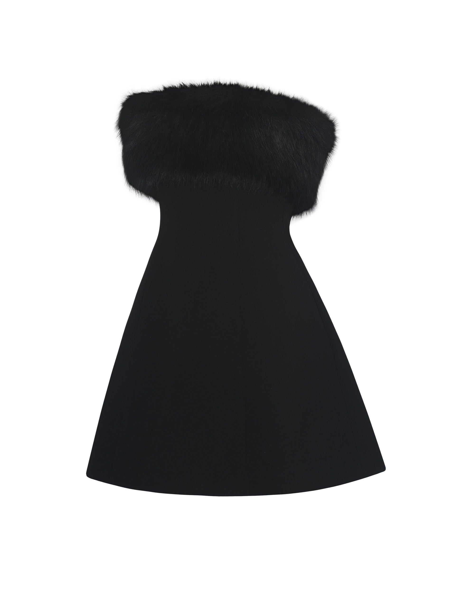 Evelyn Black Fur-Trimmed Mini A-Line Dress