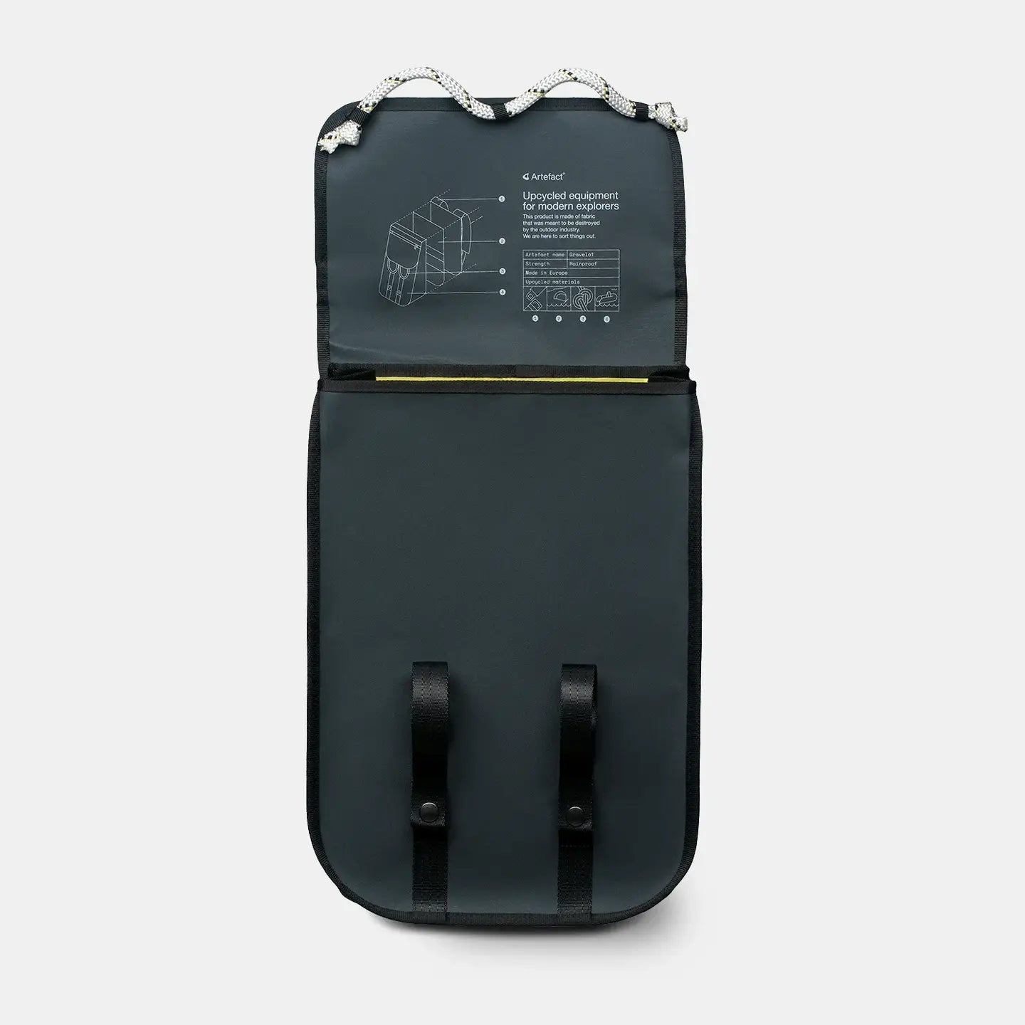 The Gravelot, with its 18 liters, will accompany you for all your daily challenges and weekend getaways. With a minimal carbon footprint and exceptional durability, it is the most intensely eco-friendly bag on the market. Made from inflatable boat canvas, it can withstand the worst downpours.