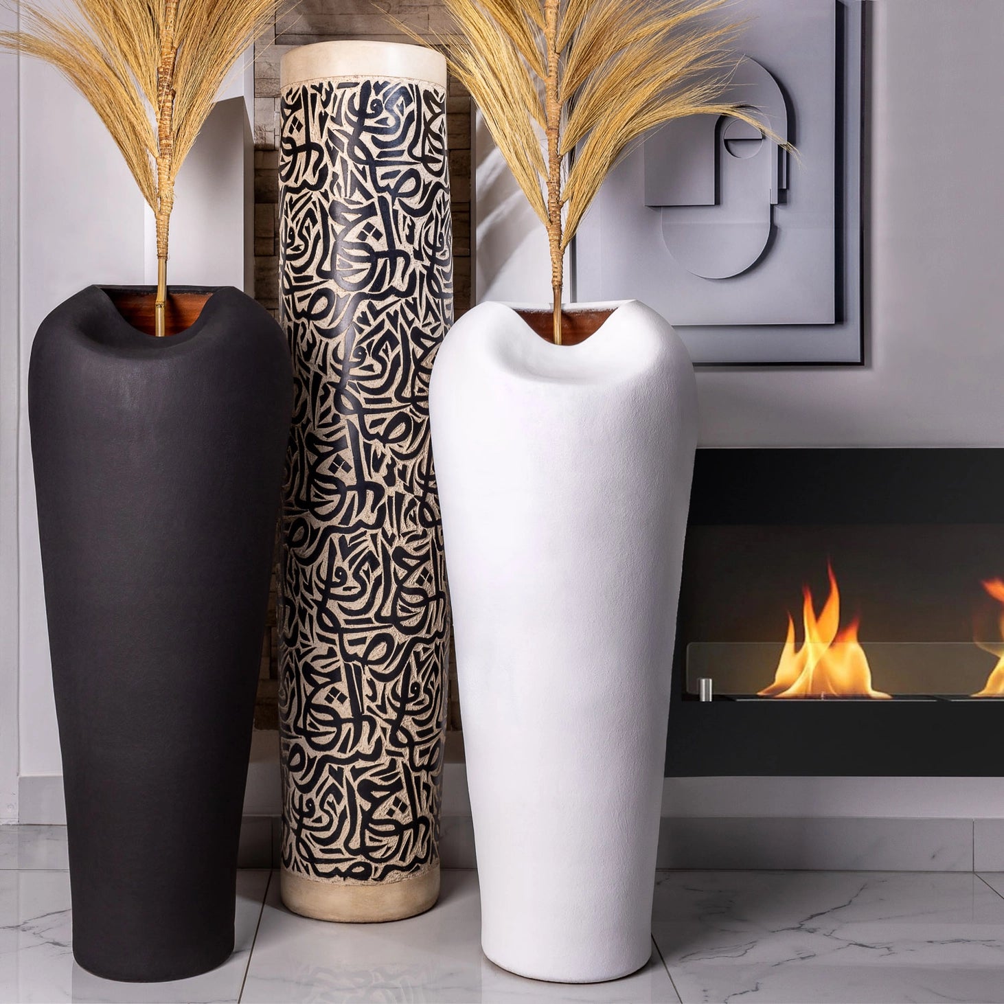 The 1 meter high OVIAN/OVIAB jars, made of terracotta and finely worked by hand, are refined jewelry for an elegant, modern and designer interior. Its design, far from being fortuitous, is the result of meticulous craftsmanship. Every curve, every detail is carefully thought out to blend harmoniously into contemporary interiors, while paying homage to age-old pottery traditions. Diameter: 37cm Opening: 20 cm
