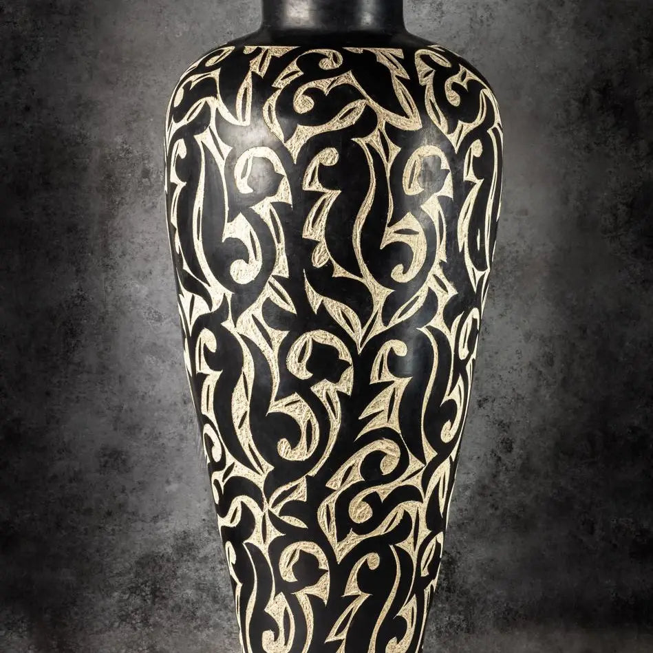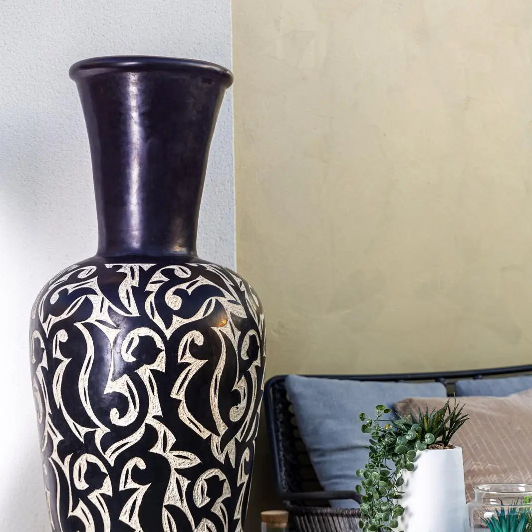 Discover the sublimation of design through Louna. This Louna jar is a true symphony in black, where every detail, each pattern evokes the wild beauty of the pampas. Made with remarkable finesse, black ceramic envelops the space in mystery and sophistication. Its exquisitely modelled curves and refined texture transform the Louna jar into a piece that is as tactile as it is visual. Each look at the Louna Jar evokes a journey to Nordic countries, where minimalism meets majesty. Let the Louna Jar sit in your living room, hall or garden, with unparalleled elegance and charm. By choosing the Louna Jar, you are not simply choosing a decoration, but an element that exudes the history, culture and soul of the North.