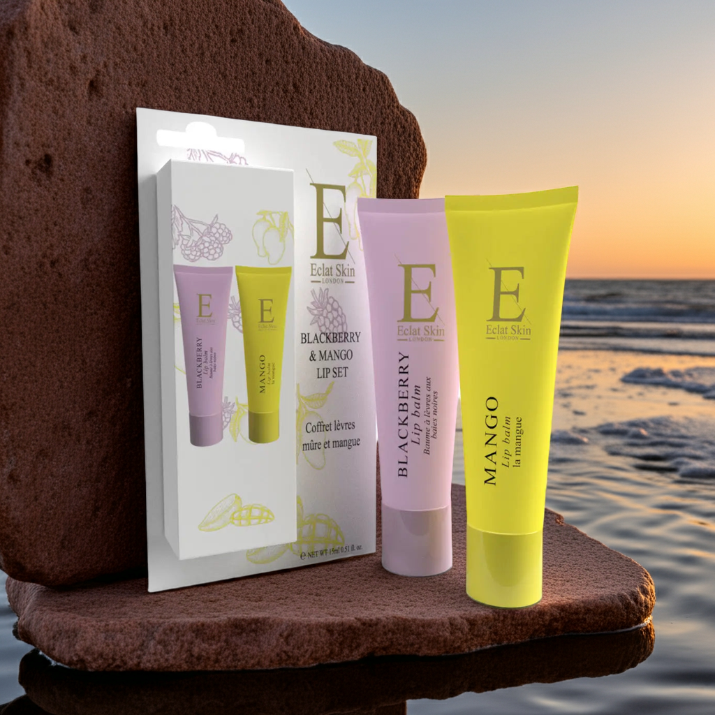 The Mango & Blackberry Lip Balm Set provides a delightful duo of nourishing lip care. Infused with the tropical sweetness of mango and the rich, fruity essence of blackberry, these balms deeply hydrate and soften your lips, leaving them smooth, moisturized, and subtly scented with irresistible fruity aromas.