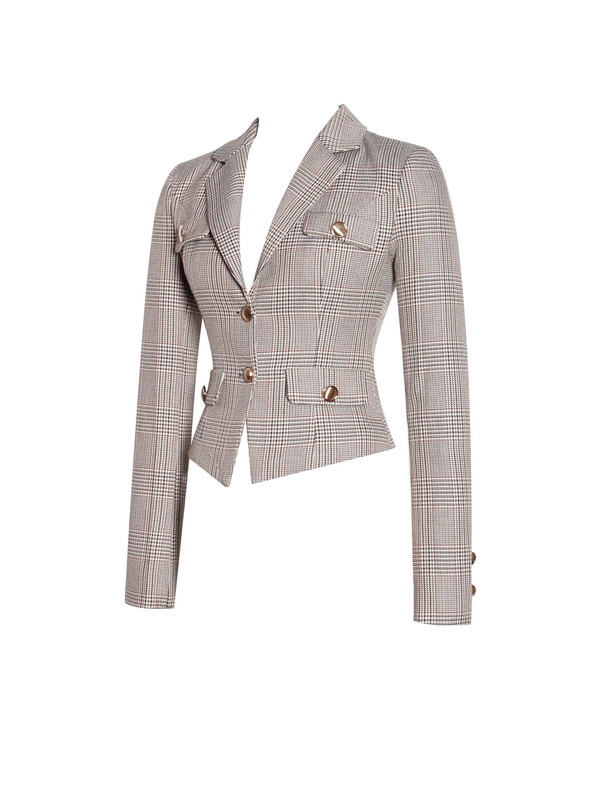 Elevate your wardrobe with the sophisticated Oakley Blazer Jacket, a timeless piece designed to impress. Featuring a classic notched collar and elegant gold buttons, this blazer exudes refined charm. The long sleeves and padded shoulders provide a structured, tailored fit, while the design cinches at the waist to accentuate your silhouette. Decorative pocket caps add a polished finishing touch, making the Oakley Blazer Jacket a versatile and chic addition to any outfit. It matches perfectly with the Oaklyn Mini Skort.