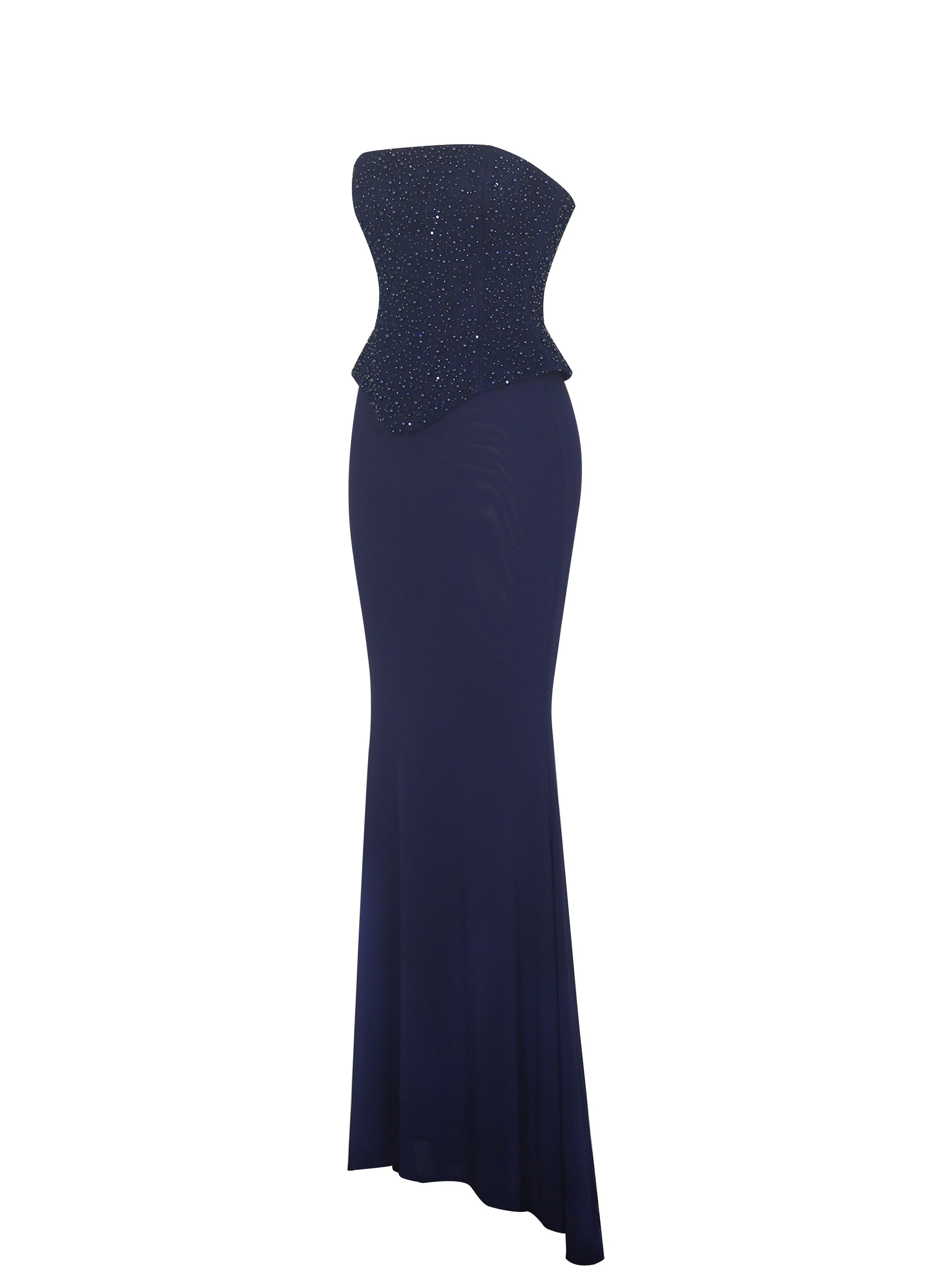 Orabelle Navy Beaded Peplum Mermaid Maxi Gown with Lace-up Back