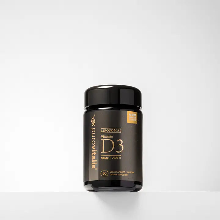 Purovitalis Liposomal Vitamin D3 delivers 2000 IU of cholecalciferol per capsule with advanced liposomal delivery for higher absorption and stability. Vitamin D3 contributes to normal immune function, bone maintenance, muscle function, and calcium absorption. Liposomal technology improves bioavailability by protecting the nutrient through digestion. Each bottle contains 60 capsules – 2-month supply at 1 capsule per day. Clean formula, vegan-friendly, no synthetic additives or fillers. Made in the EU under strict quality standards. Suitable for daily use, especially in periods of low sunlight or increased immune demand. 📌 Clinical research shows liposomal D3 leads to improved serum levels vs. conventional forms (Gregoriou et al., Nutrients. 2021).