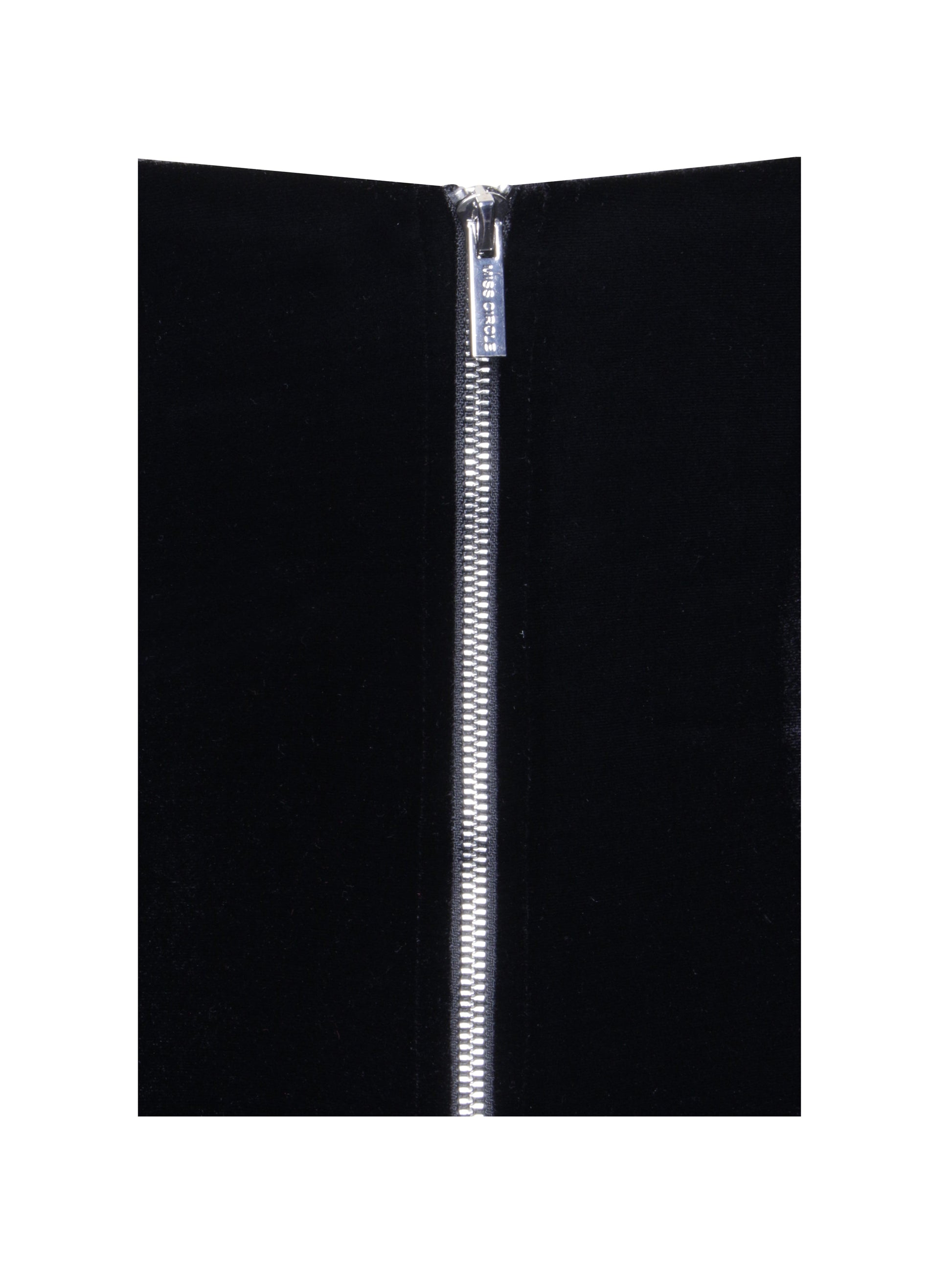 Introducing the Qiara Top, a chic and luxurious piece perfect for elevating any ensemble. Made from sumptuous black velvet, this sleeveless top features a delicate lace trim accentuating the padded cups, adding both elegance and support. The peplum design with a flare bottom creates a flattering, feminine silhouette that enhances your waistline. An easy-to-use zipper at the back ensures a seamless fit, while the fully lined interior provides comfort and a polished finish. Perfect for pairing with skirts or tailored pants, the Qiara Top adds a touch of sophistication to any outfit.