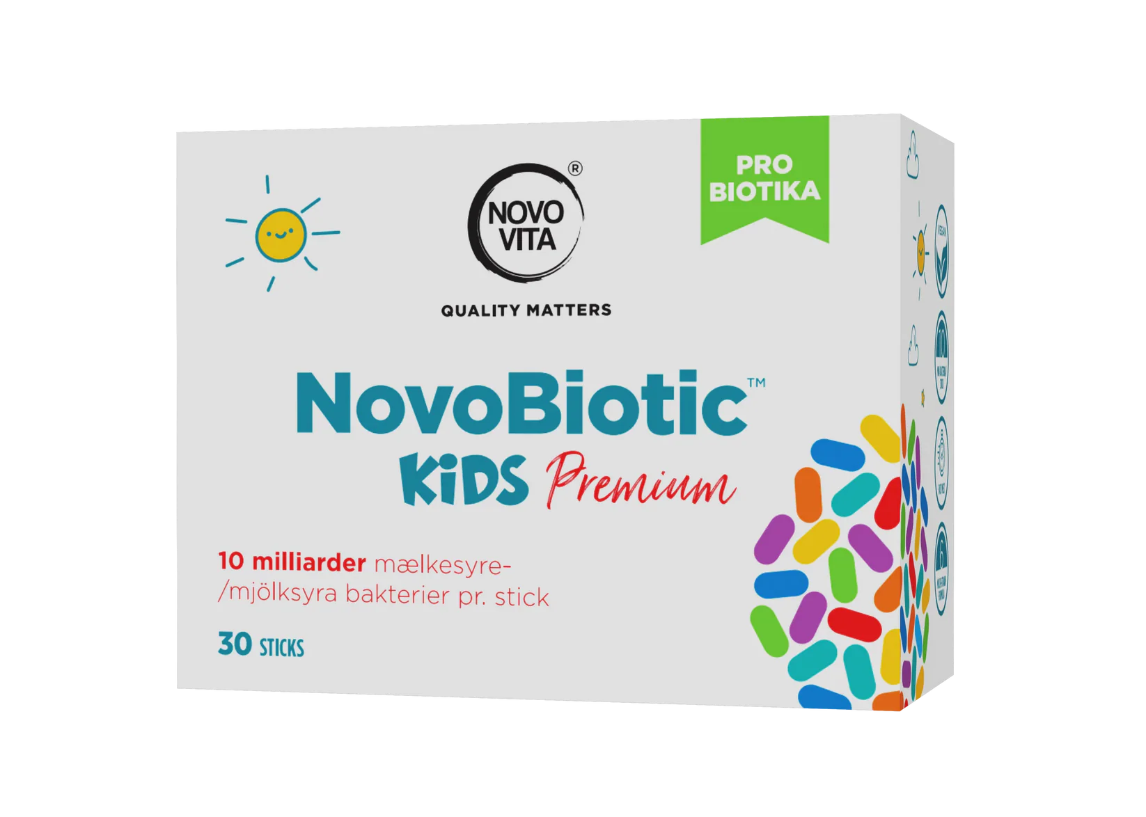 This supplement contains several strains of lactic acid bacteria that have undergone extensive clinical studies. NovoBiotic Kids Premium is developed in Denmark.