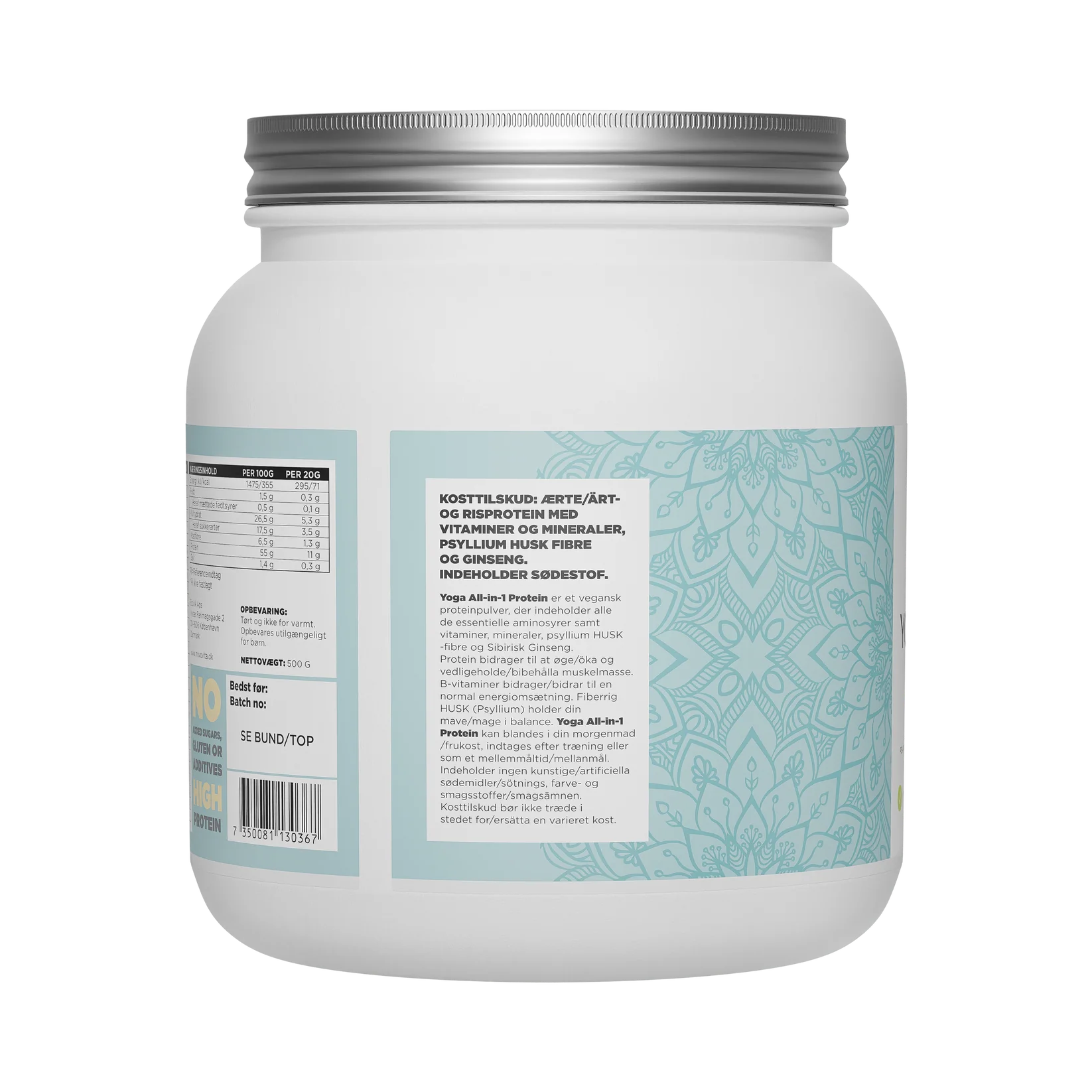 For adults and children over 11 years: Mix 2 scoops (20 g) in a glass of water, juice or similar, shake or stir well and enjoy! Yoga All-In-1 Protein can be added to your daily breakfast and snacks.